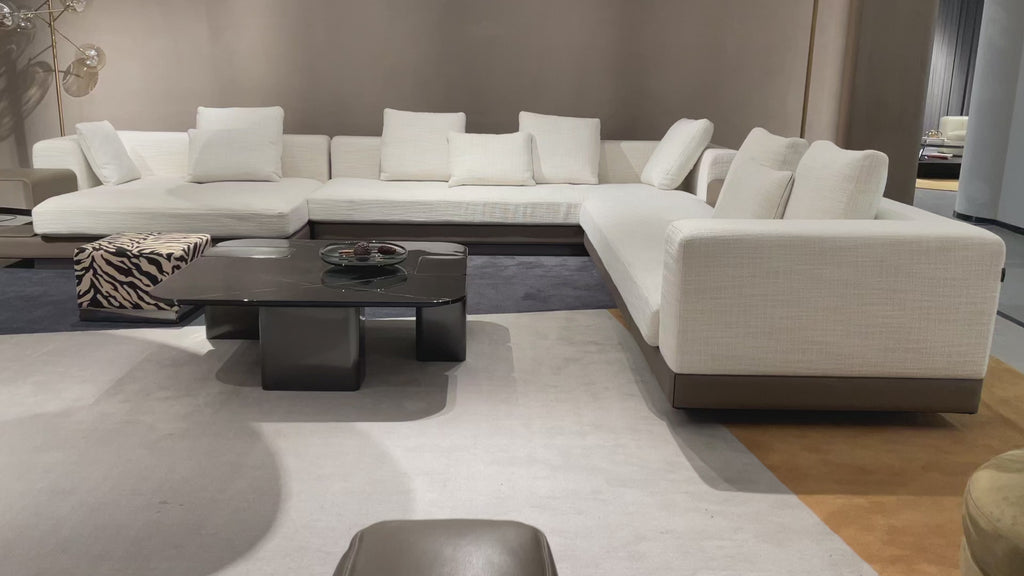 This modern sectional sofa embodies minimalist aesthetics with a refined Italian touch, designed specifically for high-end residential and commercial spaces. Upholstered in a soft, low-saturation off-white fabric, it complements a wide range of interior styles. The deep seat and plush back cushions offer superior comfort and support.